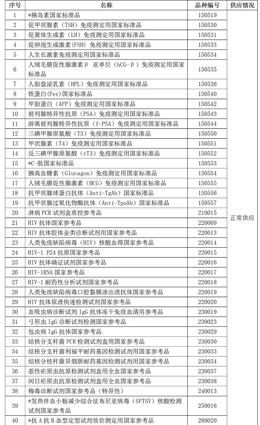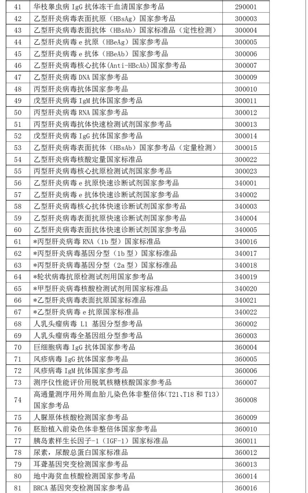 1. *标识品种为本期目录新增体外诊断试剂标准物质。