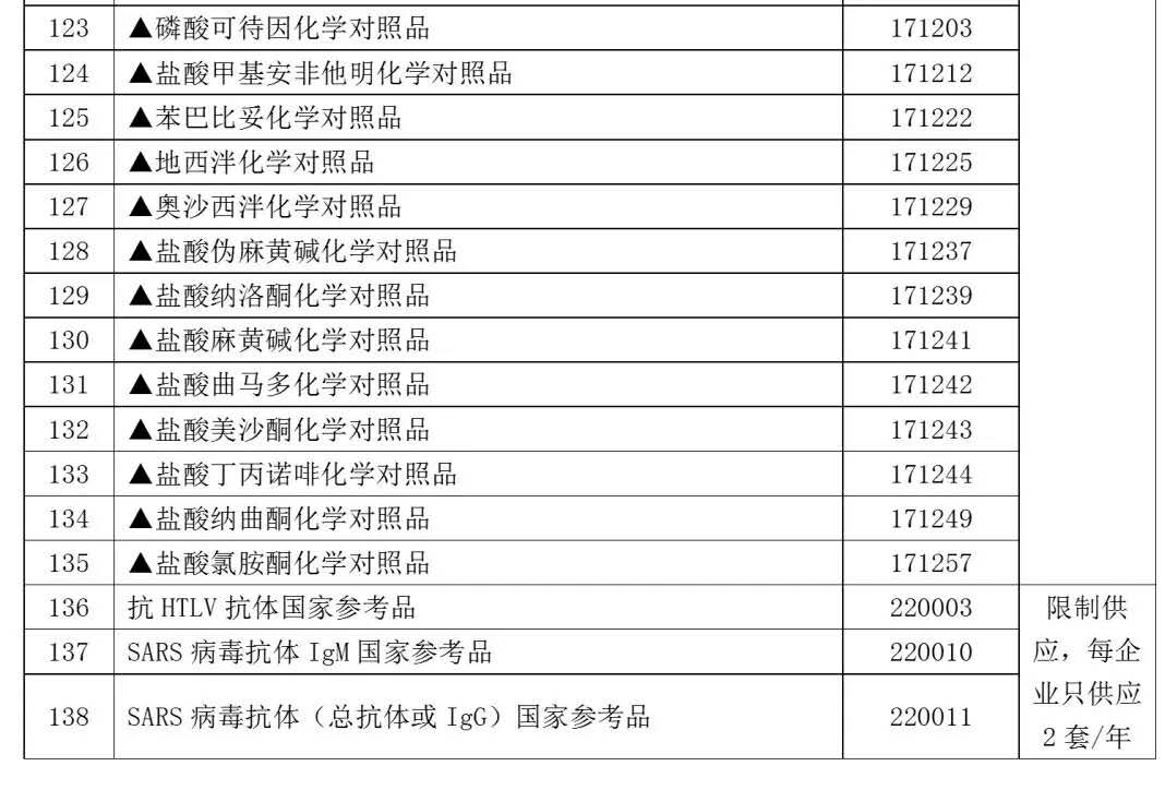 2. ▲标识品种为可用于体外诊断试剂检验的化学对照品。