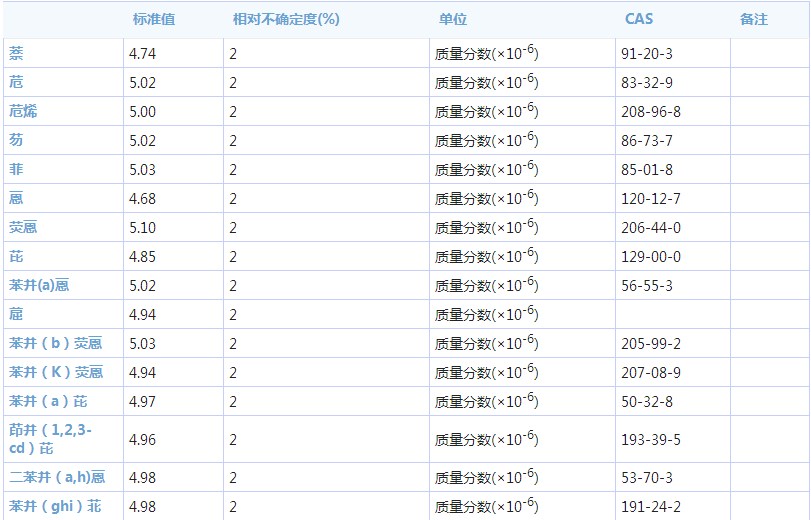 商品名称:GBW08736 乙腈中16种多环芳烃混合溶液标准物质1mL/支